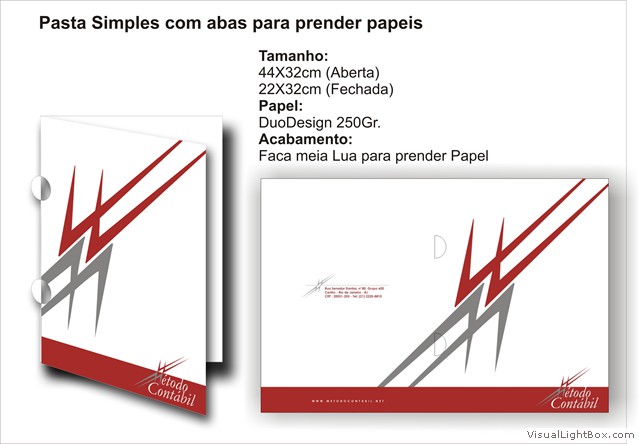 | 44 X 31 aberta / 22 X 33 fechada | Couche Brilho 230 ou 250gr | Dobra e corte | Aba porta folha |